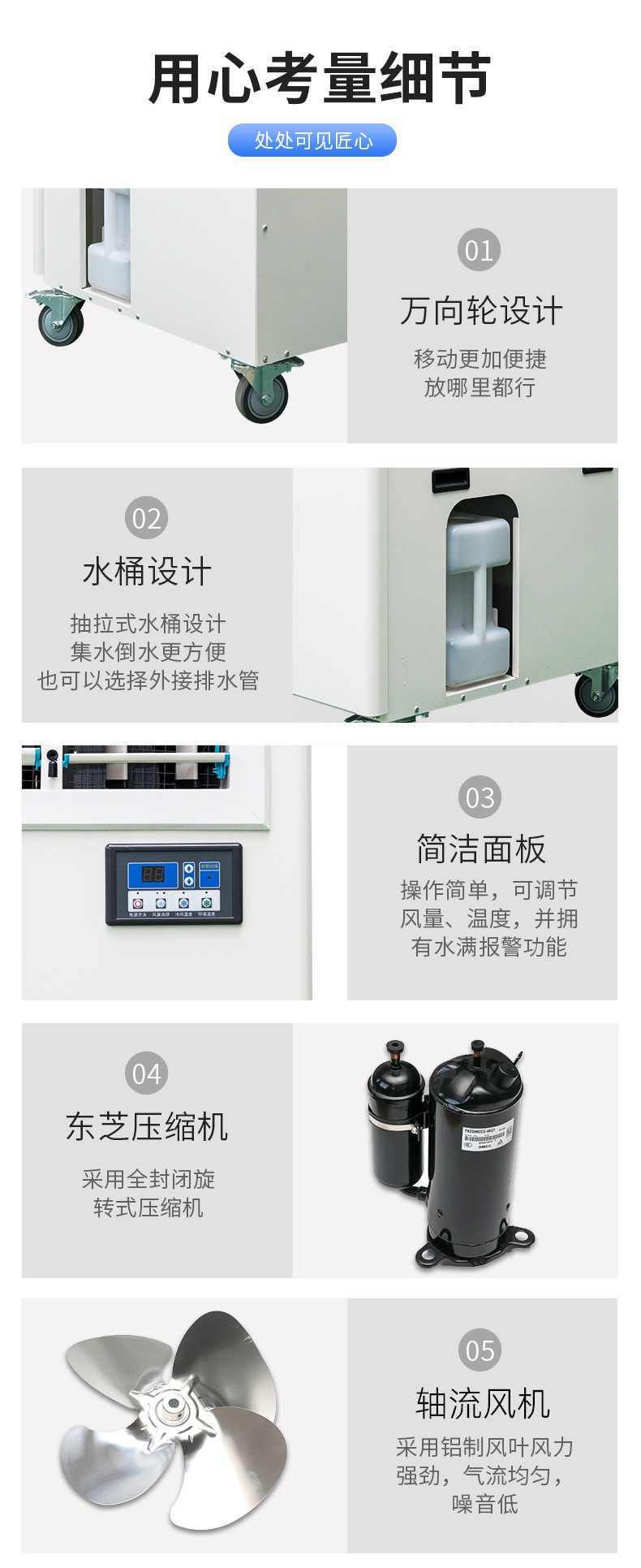 8、機身一體化設計,科學(xué)布局,可機內儲水桶積水.也可接水管排水,附帶除濕效果