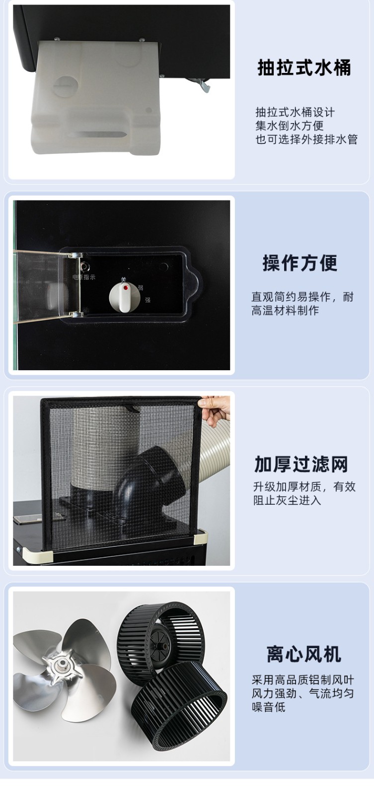 8、機身一體化設計,科學(xué)布局,可機內儲水桶積水.也可接水管排水,附帶除濕效果